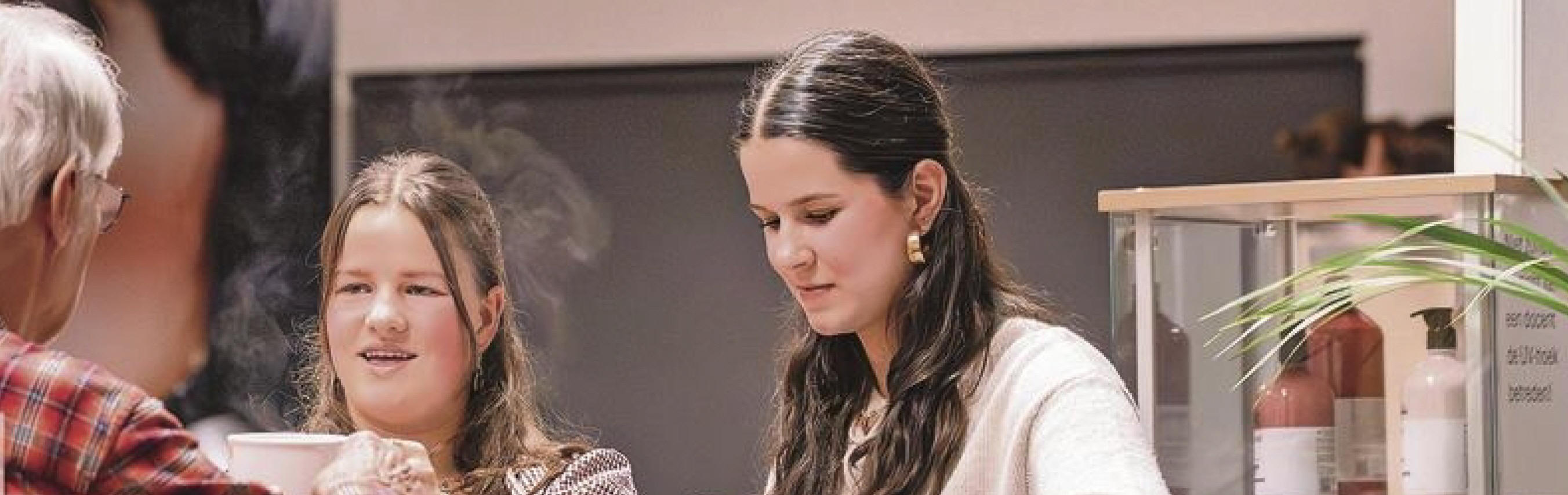 Naomi Ruitenbeek (3kz3) en llse van Eck (3gt3) liepen hun Maatschappelijke Stage bij ‘Aan Tafel’ en kozen ervoor om als vrijwilliger te blijven helpen. Heel mooi dat ze hun talenten hiervoor inzetten en daarover zijn ze geïnterviewd in de Barneveldse Krant.